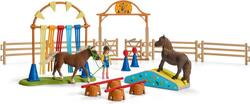 Počas tréningu agility sa poníky hravo zoznámia s rôznymi prekážkami. Po prvé, môžu ich čuchať hore a dole. Potom sú poníky opatrne vedené cez ne a okolo nich. Pre niektoré prekážky, poníky potrebujú zhromaždiť veľa odvahy. V takýchto časoch je dôležité byť trpezlivý a láskyplne ich povzbudzovať.