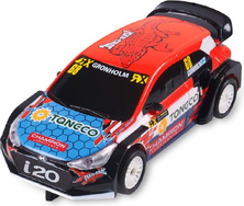 Dráhové autíčko SCX Compact Hyundai i-20 RX KwikFit v mierke 1:43, pre autodráhy SCX Compact. Autíčko je vybavené LED svetlami.