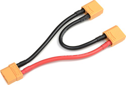 Sériový Y-kábel s konektormi XT-90 Anti-Spark a káblami 10AWG, dĺžka 12cm. Dva prístrojové (pre batérie) a jeden batériový konektor (do regulátora). Do série sa môžu zapájať iba akumulátory rovnakého typu, rovnakého napätia a rovnakej kapacity!