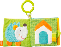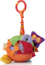 - Mäkká hrkajúca loptička s vysoko kontrastným vzorom a farebnými prvkami.