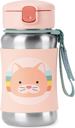 SKIP HOP Spark Style Fľaša so slamkou na vodu nerez Mačička 12m+