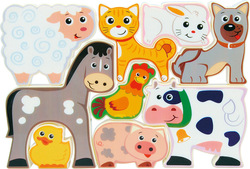 Veľké puzzle s obrázkami zvieratiek z farmy pomáhajú rozvíjať detskú motoriku a logické myslenie.Navyše si s nimi deti určite užijú veľa zábavy.