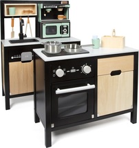 Táto drevená detská kuchynka v industriálnom dizajne ponúka všetko, čo malé kuchárky alebo kuchári potrebujú na varenie.
