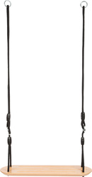Táto priestranná hojdačka z dreva je klasická hojdačka, ktorá vyniká kvalitným vzhľadom vďaka prírodnému drevu v kombinácii s čiernymi lanami.