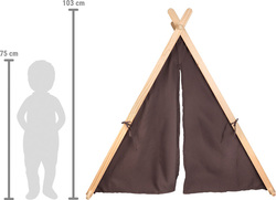 Hranie, čítanie, relaxácia. Tento stan pre vnútorné požitie je vyrobený z dreva a látky. Trendová farba taupe je zmesou hnedej a šedej farby, vytvára príjemný pocit bezpečia, pokoja a pohody, čo stan robí ideálnym útočiskom v detskej izbe. Moderný stan ponúka dostatok priestoru vo vnútri a možnosť nahliadnuť von vďaka bočnému okienku. Vstup sa dá spustiť, alebo pripevniť k boku šnúrami. Či už sa stan používa ako miesto stretávania a hrania s ostatnými deťmi, domov pre plyšové zvieratká a bábiky, alebo ako útulný relaxačný kútik, možnosti hrania sú mnohopočetné. Deťom ponúkajú nespočetné množstvo príležitostí na rozvoj počas kreatívnych hier.