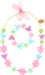 Krásna sada pre malé parádnice od 3 rokov obsahuje náhrdelník s korálkami v tvare motýlikov a kvetov a ladiaci elastický náramok. Jemné pastelové dodávajú šperkom jemný a hravý vzhľad, ktorý si deti zamilujú. Ideálny doplnok na oslavy, fotenie aj pre každodennú radosť.