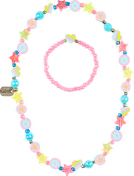 Krásna sada pre malé parádnice od 3 rokov obsahuje korálkový náhrdelník a ladiaci elastický náramok. Farebná kombinácia pastelových farieb dodáva šperkom jemný a hravý vzhľad, ktorý si deti zamilujú. Ideálny doplnok na oslavy, fotenie aj pre každodennú radosť.