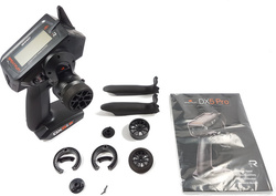 Balenie obsahuje RC vysielač DX5 Pro 2021, uhlové vložky 10° a 15°, 2x náhradnú rukoväť, menší volant, obmedzenie rozsahu volantu 32°, 36°, náhradné koleso volantu. Návod SK a manuál EN, DE, FR, IT.