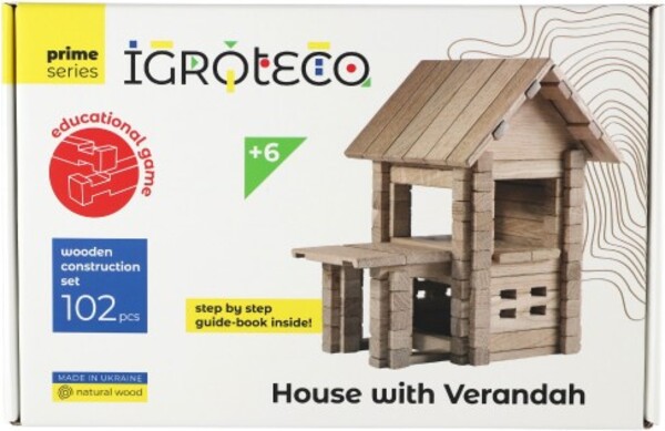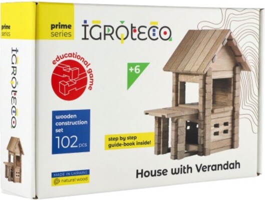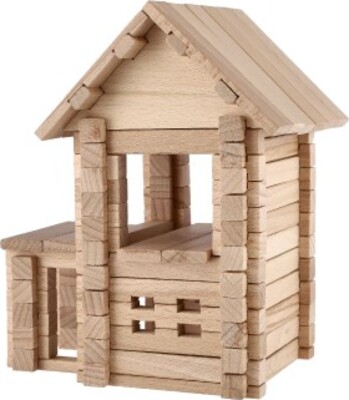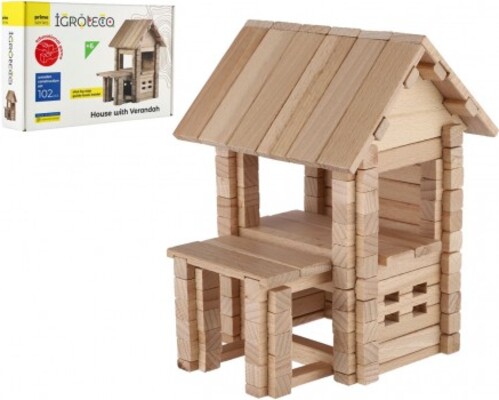 Stavebnica drevený dom 102 dielikov v krabici 28x18x7cm