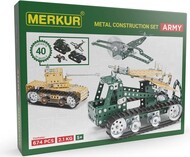 Stavebnica Merkur Army set. Stavebnica je zameraná na vojenskú techniku. môžu sa z nej zostrojiť dve armády. Jedna v pieskovom maskovaní a druhá v tmavo zelenom maskovaní.