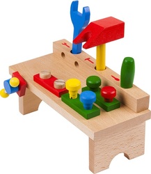 Súprava dreveného náradia, ktoré formou hry rozvíja jemnú motoriku a technické chápanie.