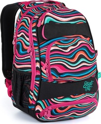 Strih Yumi je jedným z našich najobľúbenejších. Aj preto sme ho tento rok obliekli do farebného hravého dizajnu s vlnkami. Chrbát batohu je pevný vďaka hliníkovej výstuži, avšak je mäkko polstrovaný. Polstrované sú aj dĺžkovo nastaviteľné, anatomicky tvarované ramenné popruhy s výškovo nastaviteľným hrudným pásikom.