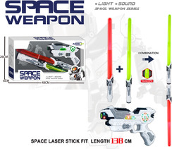 3xAA batérie do pištole, 3xAAA do meča nie sú súčasťou.