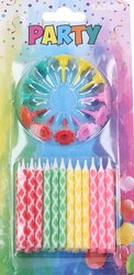 Farebné párty sviečky - balenie 24 sviečok + 12 stojančekov