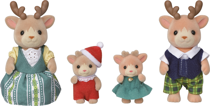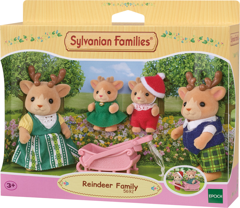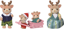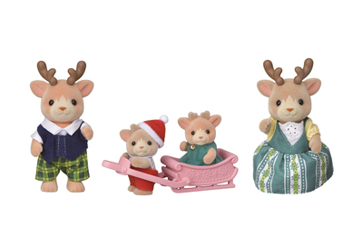 Spoznajte rodinu sobov Sylvanian Families. Súprava obsahuje 4 roztomilé figúrky rodiny sobov pokryté mäkkým semišom. Táto sada obsahuje otecka, mamičku, dve sobie mláďatá. Všetci sú svetlo hnedí a majú krásne sviatočné oblečenie. Súčasťou sú malé sane, na ktorých môžu obe mláďatá sedieť a byť ťahané mamičkou alebo oteckom.Hračky Sylvanian Families rozvíjajú predstavivosť a povzbudzujú deti k hraniu rolí. Hra s figúrkami rozvíja kreativitu a učí emóciám vytváraním a rozprávaním príbehov založených na každodenných zážitkoch a pozorovaní sveta. Vyznačujú sa najvyššou kvalitou a výnimočným dôrazom na detaily. Figúrky Sylvanian Families majú pohyblivé končatiny a hlavu. Oblečenie je vyrobené tak, aby sa dalo opakovane vyzliekať a obliekať.