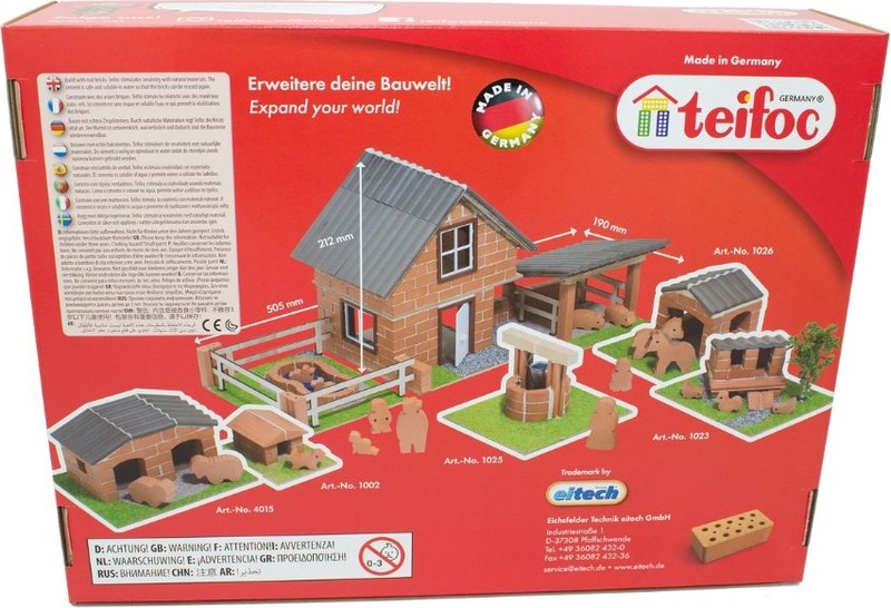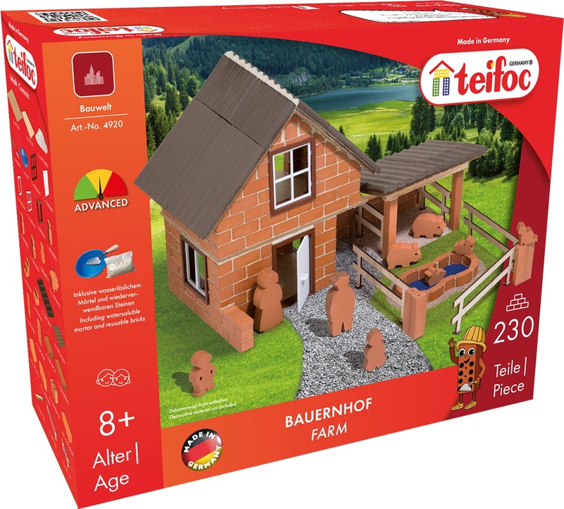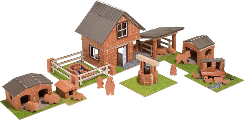 Postavte si vlastnú farmu z 230 dielikov. S pravými miniatúrnymi tehličkami, vodou rozpustnou maltou, plastovými oknami a dreveným elektrickým plotom môžete vytvoriť dokonalý domov pre svojich zvieracích kamarátov.