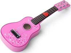Gitara má natiahnuté nylonové struny, v balení s trsátkom na vybrnkávanie. Je vyrobená z odolného dreva a bude tak ideálnou prvou akustickou gitarou Vášho dieťaťa - nastávajúceho hudobníka. Deti si užijú zábavu, keď budú predvádzať koncert svojej obľúbenej rockovej alebo popovej hviezdy, bude to show pre celú rodinu! Krásna ružová gitara s hviezdami je veľká tak akurát pre detské ruky. Deti sa vďaka nej naučia rytmu a časovaniu. Podporuje senzorickú a kreatívnu hru. Túto hračku nemožno pokladať za hudobný nástroj.