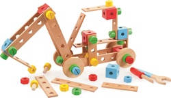 Táto 91 dielna súprava obsahuje náradie, farebné skrutky, matice, kocky a doštičky. To všetko môžu deti spojiť a postaviť zložité výtvory. Postav, zoskrutkujte, utiahni! Deti môžu priloženým skrutkovačom a kľúčom dotiahnuť skrutky a postaviť kreácie podľa ich gusta. Čo asi postaví Vaše dieťa? Stavebnicu je jednoduché zložiť a opäť rozložiť, v balení taktiež nájdete leták s návodom a príkladmi modelov, ktorými môžete začať. Podporuje deti v kreatívnej a predstavivej hre. Rozvíja koordináciu ruka-oko, jemnú motoriku a zručnosť.