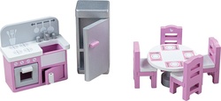Krásny nábytok z bukového dreva sa bude hodiť do každého domčeka pre bábiky, má jednoducho všetko, čo budú deti potrebovať na vytvorenie kuchyne pre bábiky, ktoré sú hladné po celom dni plnom hier. Set o deviatich kusoch zahŕňa chladničku/mrazničku, stôl a 4 stoličky, dva kuchynské doplnky a kombinovaný sporák/drez, na ktorom tiež nájdete nákupný zoznam. Krásne detailný set sa bude hodiť do domčeka pre bábiky Tidlington (T0220) a iné domčeky štandardnej veľkosti.