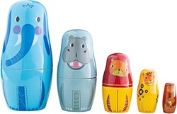Láskyplne maľované figúrky matrioška v podobe exotických zvieratiek. Menšie zvieratká sa podľa veľkosti postupne schovávajú do seba. Tieto bábiky sa ľahko uprostred otvárajú, čo je skvelá prax na koordináciu ruka-oko a jemné motorické zručnosti.