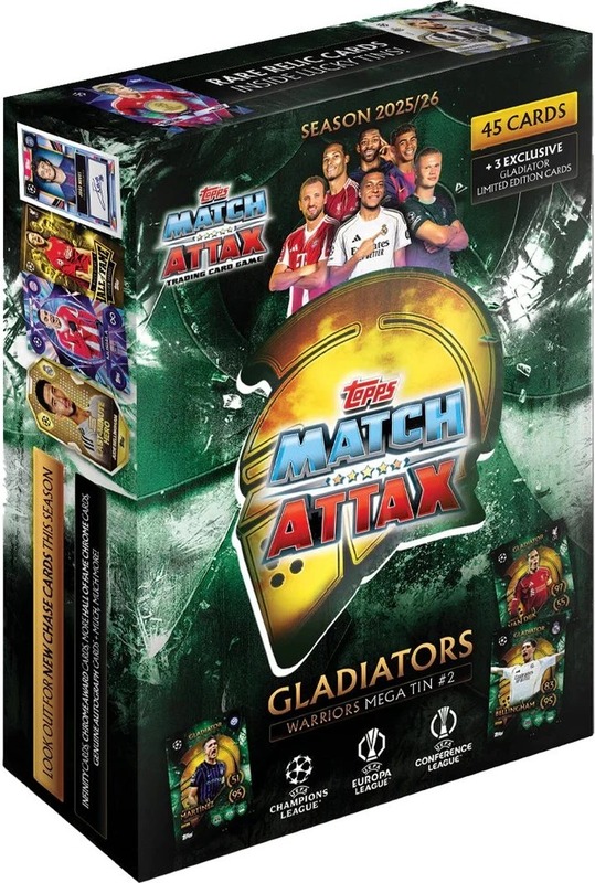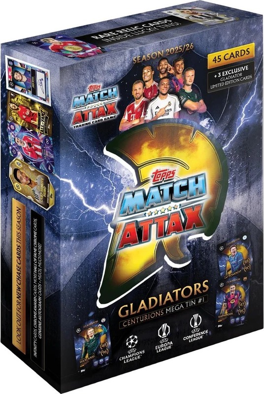 Pusťte sa do najväčšieho zberateľského zážitku s Mega Tinom zo série Topps UCC Match Attax 2025/26! Aj keď kolekcia ponúka štyri tematické plechovky (Centurions, Warriors, Spartans a Battlers), získavate jeden náhodne vybraný Mega Tin, ktorý je najlepším zdrojom exkluzívnych kariet a dáva vám šancu na tie najžiadanejšie relikvie v celej sérii.