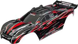 Náhradný diel pre RC modely áut Traxxas Rustler 4x4 1:10 VXL: karoséria červená. Nafarbená, aplikované obtlačky, zostavená s predným a zadným držiakom nadstavby a zadnou podperou nadstavby pre montáž bez klipov. Rázvor 295mm.