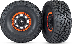 Kompletné univerzálne kolesá pre Traxxas Unlimited Desert Racer. Disky Desert Racer® v čiernom prevedení s oranžovými ráfikmi a pneumatikami Baja KR3 (2 ks v balení).