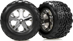 Kompletné kolesá pre RC modely áut. Chrómované disky All-Star s nalepenými pneumatikami Talon a vložkou.