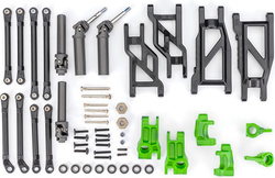 Závesná súprava Extreme Heavy Duty - zelená, pre vysoké zaťaženie. Vylepšite exponované časti vášho modelu touto sadou vyrobenou z najodolnejších materiálov, ktoré spoločnosť Traxxas používa. Súprava je navrhnutá tak, aby vydržala dlho, či už prechádzate náročným terénom alebo skáčete s modelom. V balení sú jednotlivé diely, ktoré ľahko vymeníte za pôvodné.