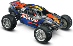 RC model auta Traxxas Rustler Nitro je výkonná 2WD Truggy. Rustler je osadený osvedčeným závodným motorom TRX 2.5 a vďaka tomu dokáže zvládnuť rýchlosť až 80 km/h! Motor TRX 2.5 udeli autu brutálne zrýchlenie, ktoré oceníte pri výjazde zo zákruty, na technických tratiach rovnako ako na dlhých rovinkách. Zcela nový dizajn karosérie podčiarkuje jeho ladné línie so vydarenou dravou grafikou, nízko položené ťažisko dáva RC autu skvelé jazdné vlastnosti.