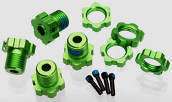 Náboj kolesa 17 mm hliníkový eloxovaný zelený s maticami pre RC modely áut Traxxas 1:10. Balenie obsahuje 4 kusy.