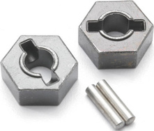 Unášače diskov kolies s čapmi. Unášač šesťhran 14 mm, hrúbka unášača 5,5 mm, otvor pre hriadeľ s priemerom 6 mm. Čapy priemer 2,5 mm, dĺžka 12,5 mm. Unášače sú vyrobené z ocele.