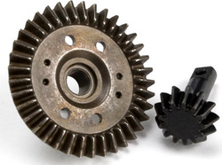 Obežné a hnacie ozubené koleso pre diferenciály RC modelov Traxxas s rovným tvarom zubov . K dispozícii je aj tuningový variant so špirálovým tvarom zubov TRA5379R.
