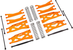 Nové ramená sú vyrobené z najodolnejšieho kompozitného materiálu, ktorý Traxxas vyvinul a ponúkajú presnú rovnováhu medzi tvrdosťou a pružnosťou. Nový materiál je tiež vhodný do chladného zimného počasia, pri ktorom je menej náchylný na prasknutie. Priložené pružiny, s tuhosťou 1.346, nahrádzajú štandardné pružiny a poskytujú výborné jazdné vlastnosti. Širší rozchod si vyžiadal aj dlhšie poloosy a spojovačky riadenia, vďaka premyslenej konštrukcii je však montáž sady jednoduchá a rýchla.