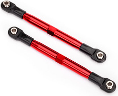 Traxxas staviteľná ojnička riadenia 87mm (2) - červeno eloxovaná tyč, z veľmi pevného hliníka 7075-T6. Ojničky s guľovými čapmi. Hliníkový kľúč na presné nastavenie dĺžky.