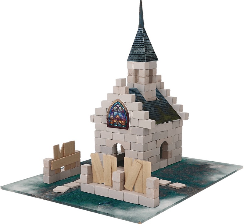 Skladajte tehlu za tehlou, režte a lepte dosky, postupujte od základov až po dokončenú budovu a nakoniec svoj výtvor ozdobte priloženými dekoráciami.