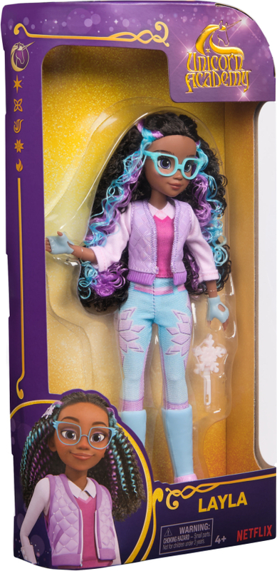 Layla je jednou z módnych bábik Jednorožčej akadémie.