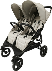 Každá sedacia časť má nosnosť do 22kg, čím umožňuje voziť dvojičky, ale aj deti rôzneho veku. Má elegantný čierny rám s otočnými prednými kolesami, ručne prešívaným lemovaním na rukoväti a madle, ako aj prešívanými sedadlami pre luxusnejší pocit.