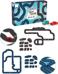 Obojstranný kartónový okruh ponúka deťom dve rôzne herné plochy - závodnú dráhu a klasickú cestu. Táto variabilita rozširuje možnosti hry a podporuje predstavivosť aj kreatívne myslenie.