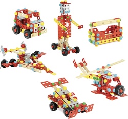 Táto krásna drevená stavebnica obsahuje viac ako 100 dielikov. V balení nájdete návod na jednoduché zostavenie 6 rôznych projektov, krok po kroku.
