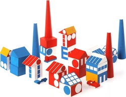 Prepracovaná vzdelávacia kocková hra je jedinečná vďaka jasným farbám a jednoduchým geometrickým tvarom od dizajnéra Ladislava Sutnara.