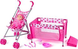 V tejto sade nájdu deti hneď 4 hračky: žmurkaciu bábiku so zvukmi, riad na kŕmenie bábiky, golfové palice, ktorých jednoduchý mechanizmus umožňuje rýchle skladanie a rozkladanie a postieľku pre bábiky