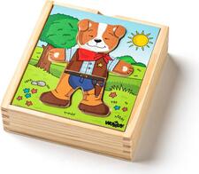 Deti tu majú možnosť si podľa vlastnej fantázie obliekať a meniť postavičku psíka. Majú k dispozícii tváre znázorňujúce rôzne nálady, telíčka a nožičky psíka s rôznymi outfitmi. Balené v praktickej drevenej krabičke. Rozvíja schopnosť logického myslenia a rozvoj fantázie.Obsahuje: 18 dielikov.
