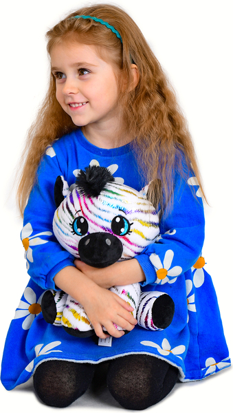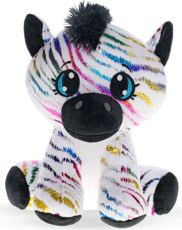 Krásna plyšová zebra o veľkosti 24cm v sediacej polohe ohromí deti na prvý pohľad svojim prevedením.Je ozdobená krásnymi farebnými pruhmi a trblietkami, ktoré si deti na prvý pohľad zamilujú.